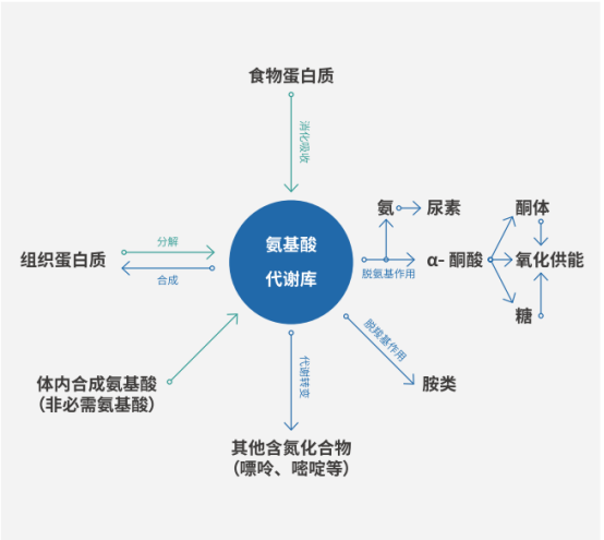 氨基酸是生物功能大分子蛋白质的基本组成单位,是构成人体营养所需蛋白质的基本物质,根据能否在体内合成分为必需和非必需氨基酸。