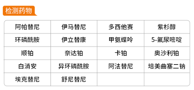 检测药物:乙胺丁醇、吡嗪酰胺、利福平、左氧氟沙星、异烟肼。